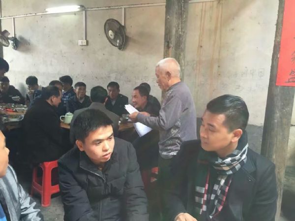 2018年2月16日(大年初一),江西省龙南县杨村镇蔡屋村举行2018年蔡氏新丁酒,该村2017年添丁11人,有250人出席酒宴。