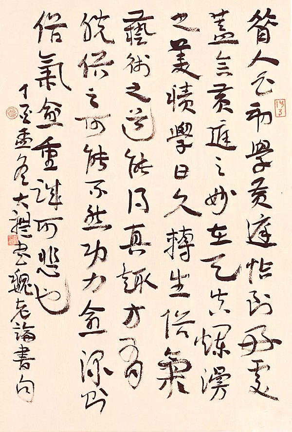 以为,书法绝不是简单地拿笔练字,这样的功课应该做,这既是书法学习的文化背景,是书法家的底气素养内涵,更体现书法艺术所承载的文明。