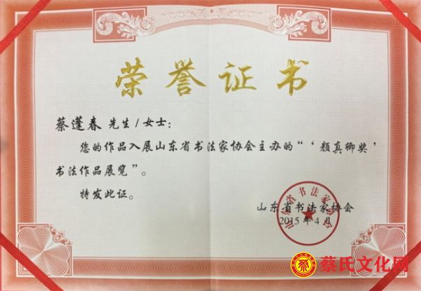 1999年获鲁迅文艺大奖,出版有:《蔡蓬春书法作品集》、《中国国学谱》、《蔡蓬春美术论》、《蔡蓬春书法论》、《蔡蓬春书画诗文集》、《蔡蓬春画集》等。其作品曾赴法国、芬兰、新加坡、日本、加拿大、法国、韩国、香港、台湾等国家和地区多次展出,中日书家作品展,中韩书法交流展,世界和平年书法展。
